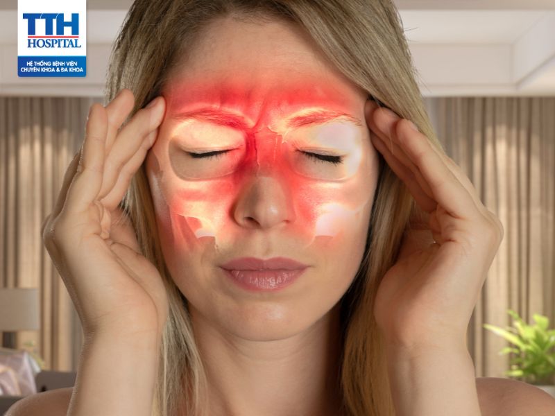 · Đau đầu và đau mặt: Đau thường xuất phát từ vùng quanh mắt, trán và gò má. Đau có thể kéo dài và tăng cường khi cúi xuống hoặc nghiêng đầu.